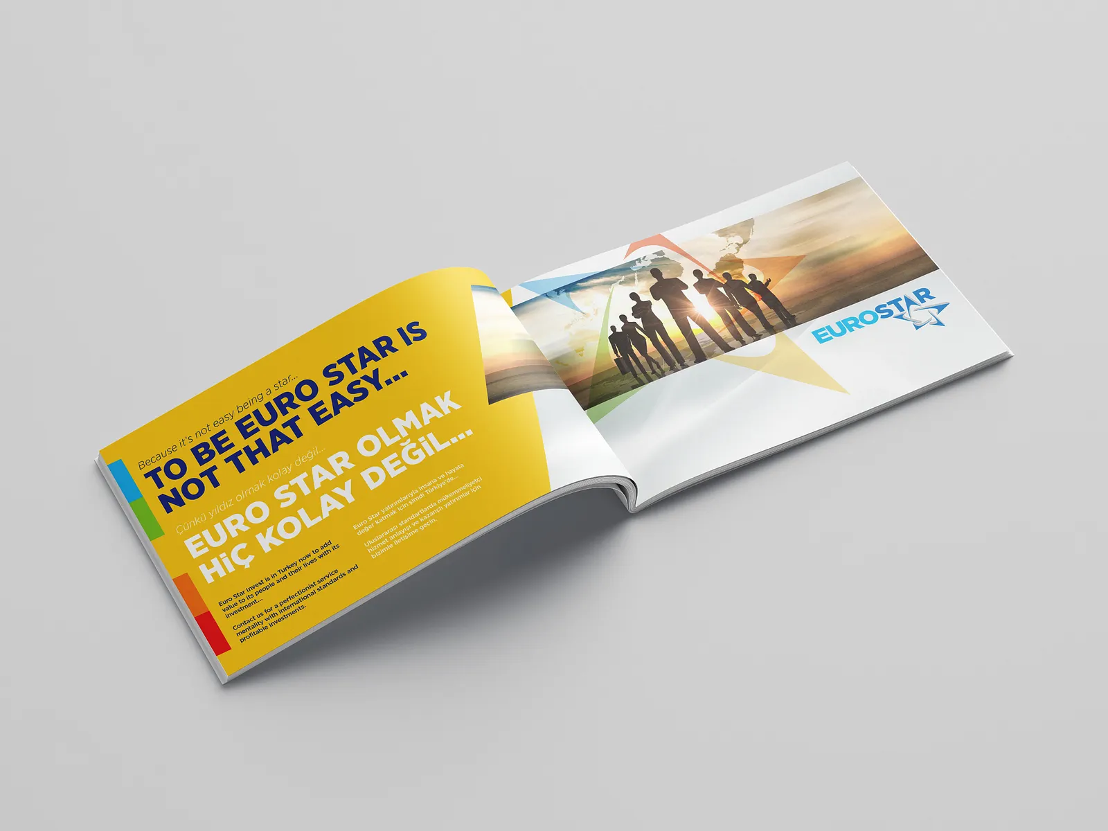 Back in 2014, I was entrusted with improving and completing a partially designed A4 landscape corporate profile for EUROSTAR Investment — a Turkish-based real estate and investment company backed by JIHCO, one of Libya’s largest holding groups.